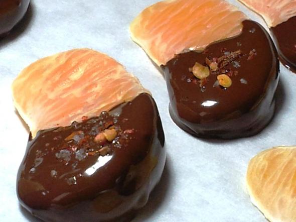 - טובלים כל פלח קלמנטינה בשוקולד המומס, עד למחצית הפלח