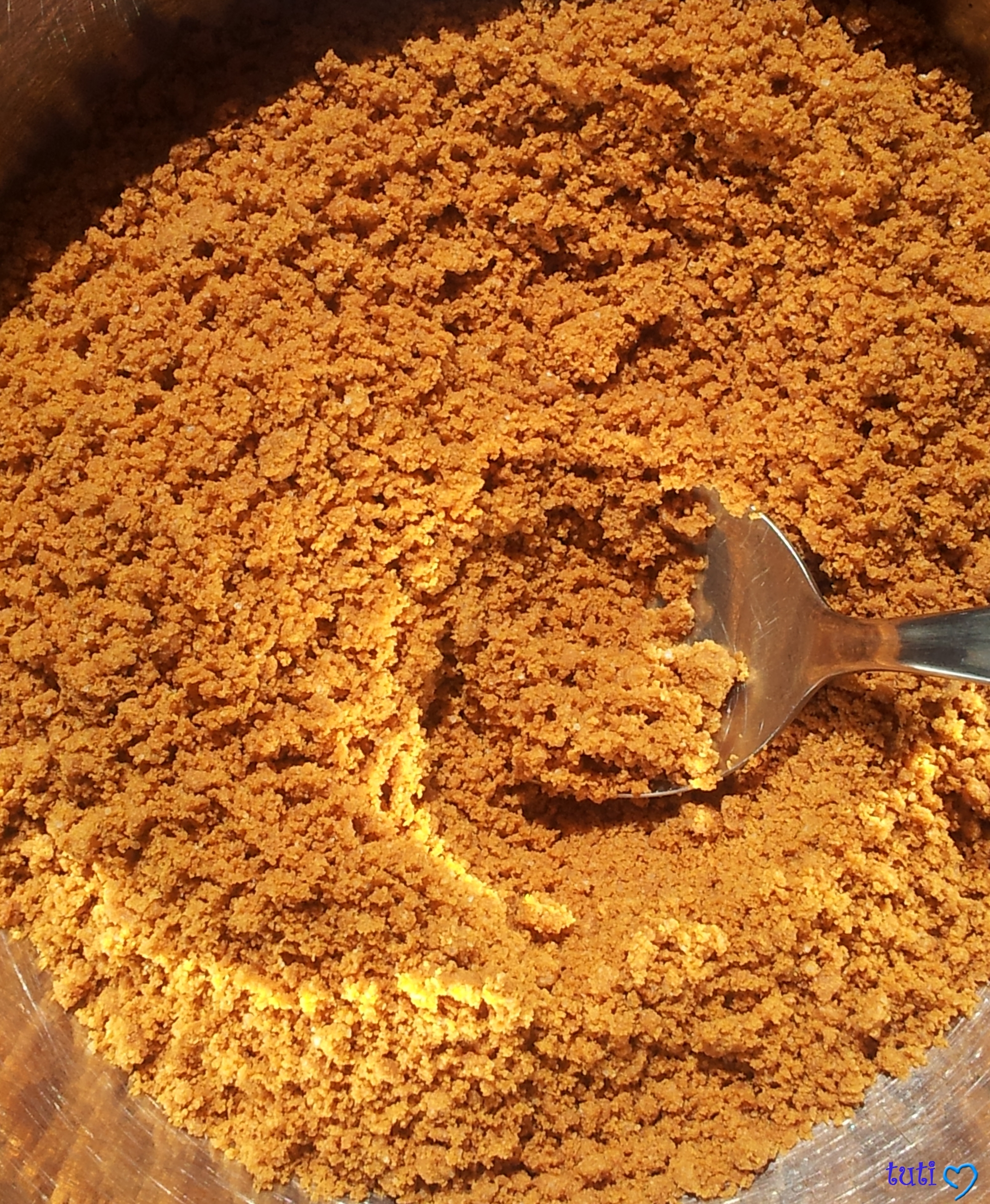 כוס וחצי של פירורי ביסקוויטים – השתמשתי בסוג ה"לוטוס" בטעם קרמל.
