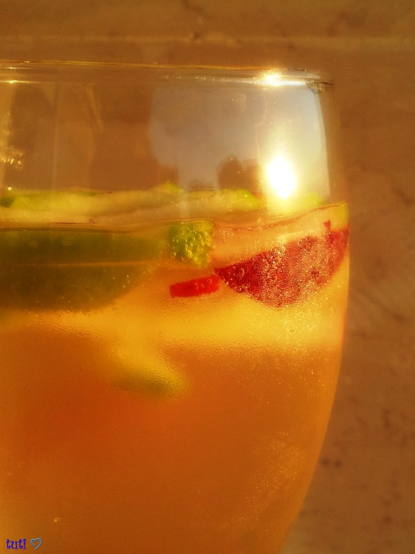 חצי בקבוק של יין לבן תוסס או סודה כלשהי בטעמים (יש בטעם ריזלינג של שוופס) העיקר שיהיה תוסס וקר 🙂