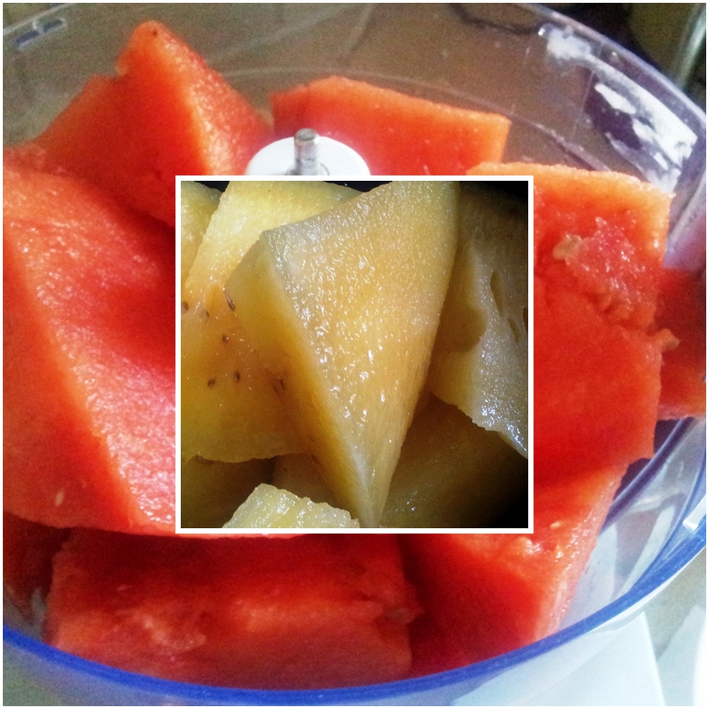כך יצא שנותרו במקרר 2 חצאי אבטיח, חצי אדום וחצי צהוב – בתחילת דרכם הרכה..
