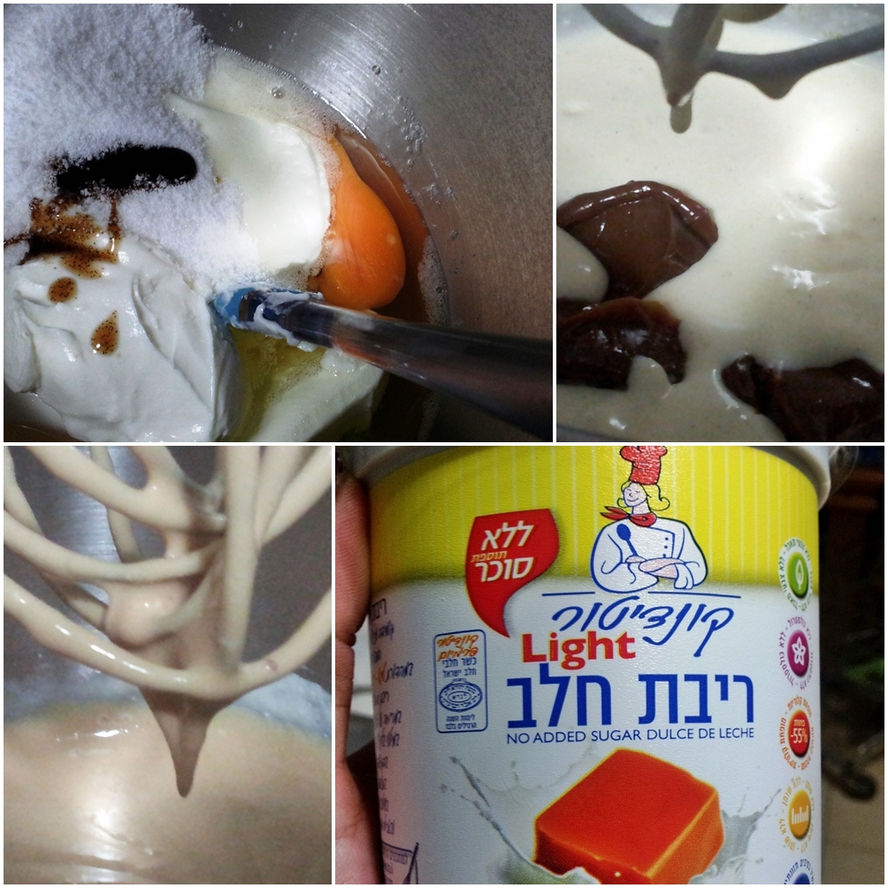 נוסיף לקרם הגבינה חצי כוס מריבת החלב ונערבב היטב.