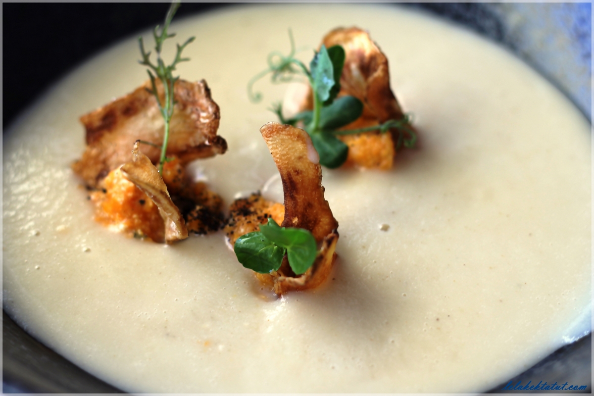 המנה השניה היתה מרק ארטישוק ירושלמי, פירה כתומים וצ'יפס ארטישוק ירושלמי.