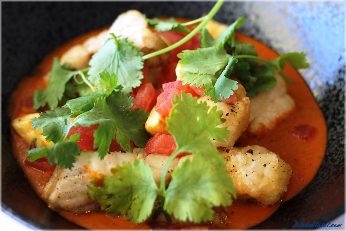 קארי אדום עם חלב קוקוס, למון גראס, צ'ילי, שאלוט, חציל קלוי, חציל בטמפורה, בייבי לוקוס מטוגן,