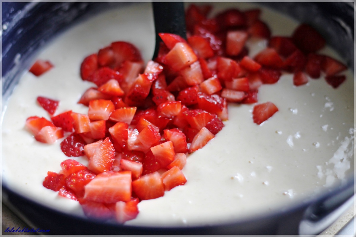 בזהירות נקפל פנימה את חתיכות התותים.