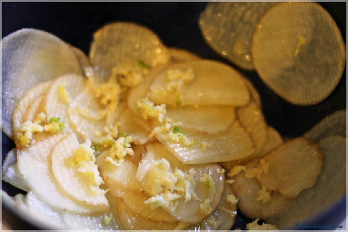 נערבב בעדינות את הכל יחד, שכל פרוסה תהיה מצופה ועם טעמים..